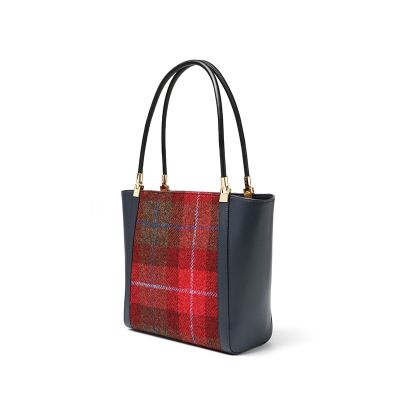 Harris Salome粗花呢英伦复古手拎单肩托特包 格纹红