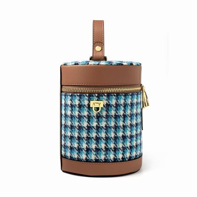Harris Salome 复古粗花呢经典款圆筒包 清酒蓝