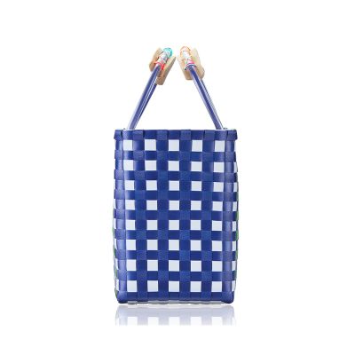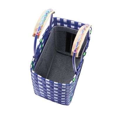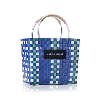 Harris Salome手工编织马赛克拼色菜篮子手提包海浪蓝拼色