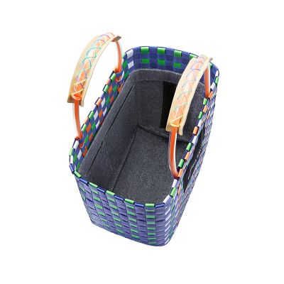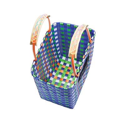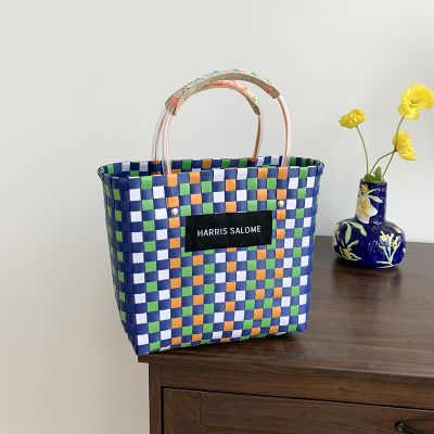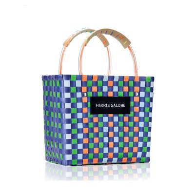Harris Salome手工编织马赛克拼色菜篮子手提包珊瑚橘拼色